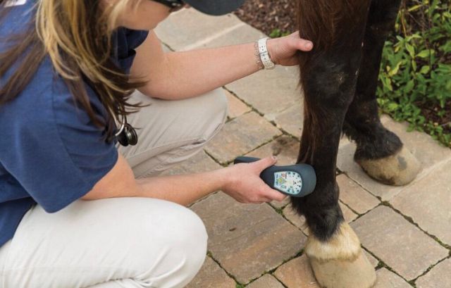 Therapeutic lasers have been used on the equine athlete since the 80s in the US but are increasing in popularity in the past five years. Low-level laser therapy, or ‘cold laser therapy’ is a form of photo-therapy used to stimulate tissue repair and provide pain management. Focused red and infrared light stimulate tissue, at and below skin surface (and is also used at acupuncture points). In photobiomodulation, the biochemical effect of the low-level pulsed laser light, increases the production of cellular energy at the mitochondrial level and thus promotes cellular regeneration, production of collagen for tissue repair and vascular dilation and synthesis for better circulation.