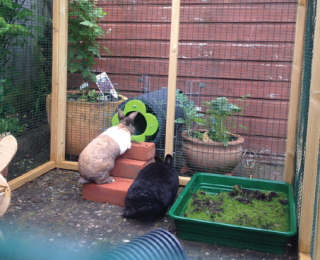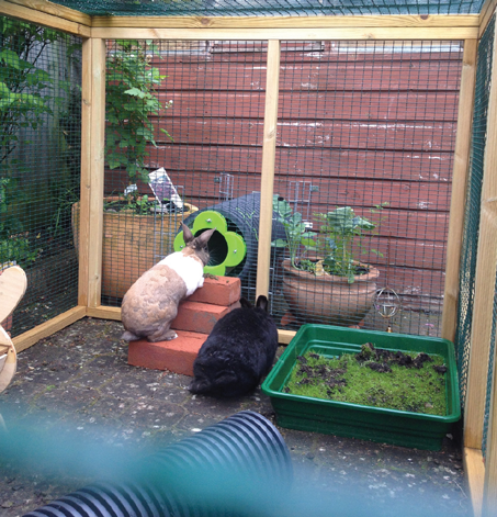 In terms of providing an optimal environment, as the top-lifting hutch was an important factor with problem behaviour, alternative housing was recommended in the longer-term. The preferred option was to connect the hutch and exercise area using a purpose-designed tunnel system. The alternative was providing an appropriate combined housing and exercise area. Either of these would limit the need for Josie to be handled and approached from above; they would also increase her environmental control (including accessing the exercise area during dawn and dusk) and offer more space for innate behaviours. As a third but less ideal option, a traditional but more appropriately sized and front-opening hutch was discussed as an alternative to Josie’s original one. With the latter, Josie would continue to be manually transported between her hutch and exercise area by her caregiver. Housing was considered regarding size, material, ventilation, shelter from extreme temperatures and draughts, sonic and ultrasonic noise, movements, shadows/reflections and light-exposure.