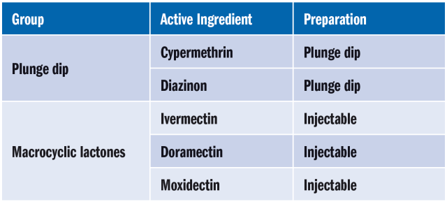 In Ireland, there are two main treatment options for controlling sheep scab (Table 1). A key consideration for parasite control strategies is ensuring that we use the correct active ingredient at the correct time. The treatment should be tailored to the individual farm and specific situation. The options are to plunge dip the sheep or to use an injectable Group 3 macrocyclic lactone (3ML) endo-parasiticide wormer. For plunge dipping there are two options: an organophosphate diazinon dip or a cypermethrin dip. For injectable 3ML products there are ivermectin, doramectin or moxidectin injections available in Ireland. The injectable 3ML products are essentially an internal worm treatment which also treats some external parasites. The plunge dip options for sheep scab treatment and prevention are also effective on other ecto-parasites like lice, keds, ticks and flies.
