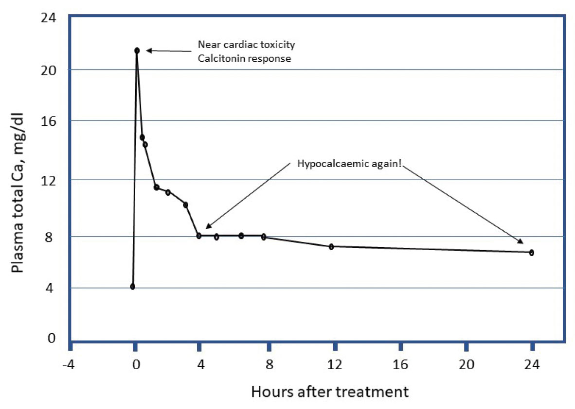 Table 2: The effect of intravenous calcium therapy on plasma calcium. Goff, 1999.