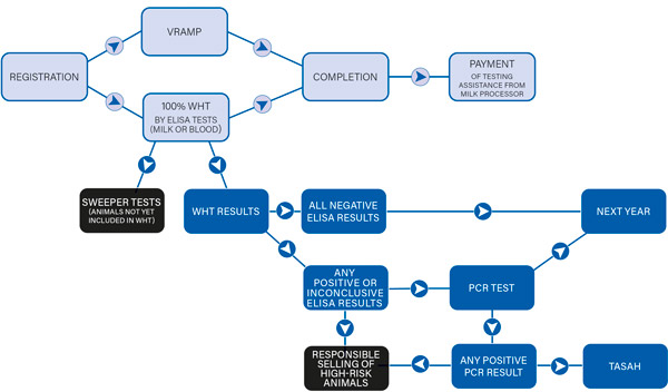 1. Annual veterinary risk assessment and management plan (VRAMP) to guide reducing spread of infection between and within herds.