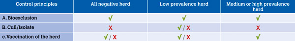 Figure 1: methods for IBR control as per within herd prevalence.