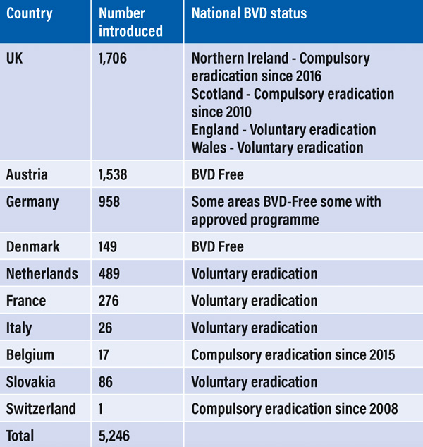 Table 2: cattle introductions for further breeding and production by country of origin and national BVD status in 2021.
