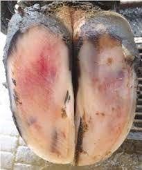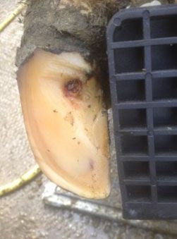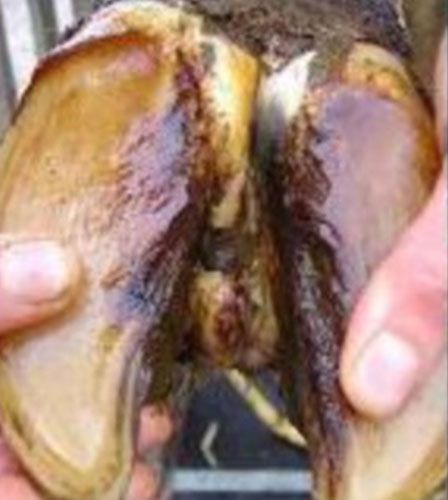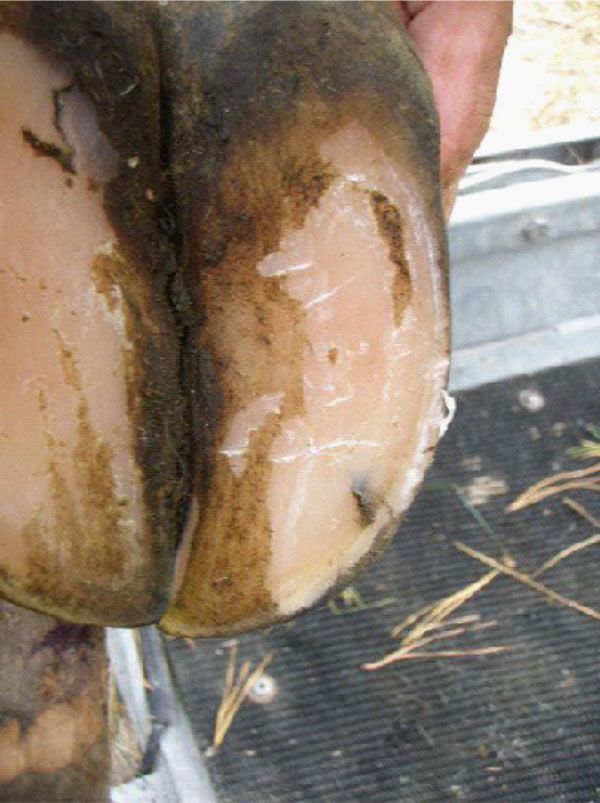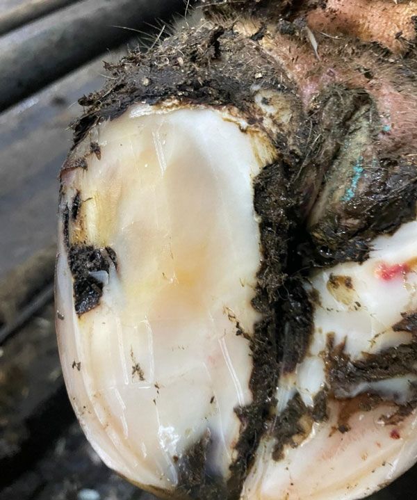 The hooves of cows that are affected by conditions such as white line disease, sole bruising, or sole ulcer, suffer damage to not only the horn capsule, but also the deeper tissues. These include the corium, the laminae, and the pedal bone. The addition of non-steriodal anti-inflammatory (ketoprofen x three days) reduces the inflammatory effect and may reduce the longer-term damage that occurs in these deeper tissues.