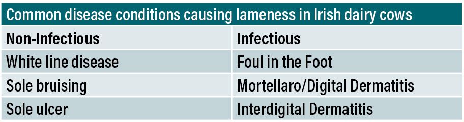Table 1: Common disease conditions causing lameness in Irish dairy cows.