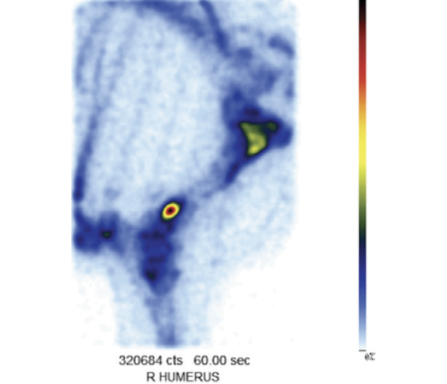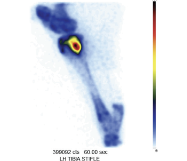 Scintigraphy offers a graphical representation of the physiological status of the musculoskeletal system, allowing for detection of pathological changes in metabolic activity of bone. These changes in physiological status can be detected earlier in the disease process and prior to the presence of any anatomical changes that may be detected on conventional imaging such as radiography and ultrasonography. Scintigraphy does not offer detailed anatomical information, however it can aid in directing the clinician toward focused use of additional diagnostic modalities, such as radiography, ultrasonography, MRI or CT as, and where appropriate. The ability of scintigraphy to be performed in the standing horse and to allow a full skeletal assessment offers advantages over other advanced diagnostic techniques such as MRI and CT, which are generally focused on a specific region of interest and limited to the distal limb, head and neck in the standing horse.