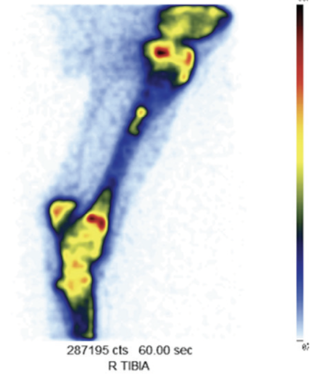 Scintigraphy generally constitutes part of a broader orthopaedic examination including the clinical examination, review of the case history and results of other diagnostic tests. Scintigraphy is useful in cases where: