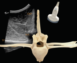 The anatomy and ultrasonographic appearance of the joints change slightly from cranial to caudal. The mammillary process is more prominent in the thoracic spine and the joint is positioned further axial and closer to the DSP compared to the lumbar region. Signs of pathology in the intervertebral articulations (see Figure 4) include new bone formation and an enlarged outline of the facet (Denoix and Dyson 2003).