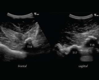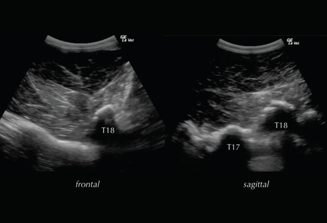 • Ultrasonography of the back should be combined with the radiographic examination and is particularly useful to examine superficial soft-tissue structures and the intervertebral articulations. To assess all structures of interest, both linear and convex transducers are required.