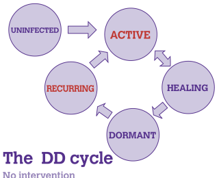Due to the way in which the DD treponemes bury into the skin and encyst, even if treated early, cattle are unlikely to be cured and will instead harbour the bacteria within a dormant lesion, which is at risk of recurring. The key to long-term DD control is to prevent recurrence of dormant lesions and to also prevent new infections in previously uninfected cows. There are three key elements to prevention: