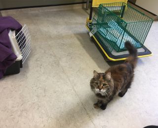 - If the cat is anxious, return it to the carrier as soon as possible and continue to talk to the owner while the cat is in its safe place; and