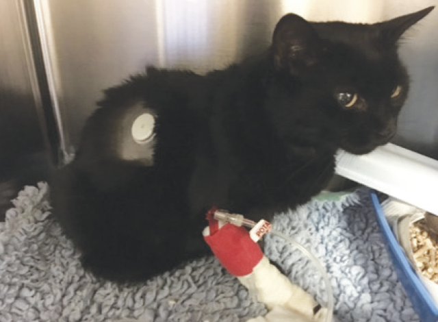 A jugular catheter is incredibly useful for blood sampling, as well as providing multiple ports for several different infusions (for example, compound sodium lactate fluid cannot be administered with phosphate). However, if this cannot be placed, then marginal ear vein sampling using a 25G needle can be performed. The medial saphenous vein in cats is also a good site for intravenous catheter placement if both cephalic veins have been used.