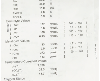 Blood gas analysis with or without electrolyte analysis Figure 3, eg. veterinary specific options include IDEXX bench top VetStat®with blood gas cartridge or Woodley’s portable EPOC® blood analysis: