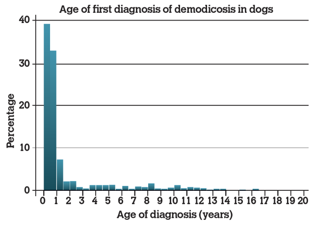 Small-animal practitioners should be aware that juvenile-onset demodicosis is much more common (about 10 times higher) than the adult-onset form. Knowledge of the predisposed breeds for these two presentations can assist with improved diagnosis and support the concept of distinct aetiopathogenetic phenotypes.