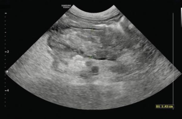 Figure 1: Sonographic image of a pancreatic mass in a dog with insulinoma.