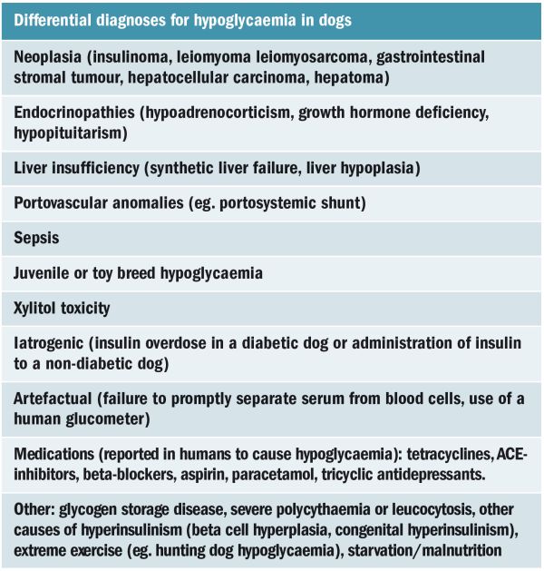 Table 1: List of differential diagnoses for canine hypoglycaemia.