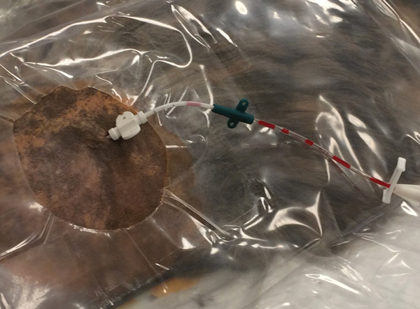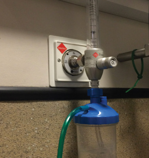Alternatives to commercial cages, include oxygen tents and human neonatal incubator units. Humidified oxygen is provided by bubbling the oxygen through a tube submerged in a bottle of sterile saline prior to being delivered to the patient via a length of tubing (Figure 2). However, both of these alternatives are not vented and, therefore, require regular opening to allow for carbon dioxide to escape. The temperature can be set within the cage, but this needs to be monitored carefully to prevent hyperthermia.