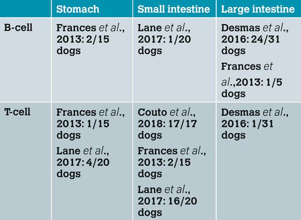 Susana Martinez Valls BVetSc, MRCVS Hamilton Specialist Referral, and Katarzyna Purzycka DVM, MVetMed, MRCVS, DipACVIM (Oncology), Lumbry Park Veterinary Specialists, review the current literature on canine alimentary lymphoma (AL) with an emphasis on clinical behaviour and treatment