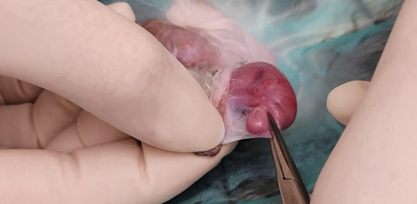 The only difference is that we skip the step of opening into the tunic to check we have the full testicle.
