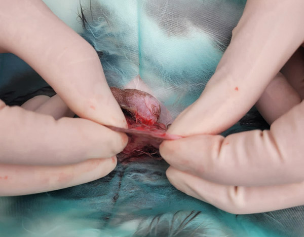 Wound glue is used to close the scrotal sac (see Figure 17).