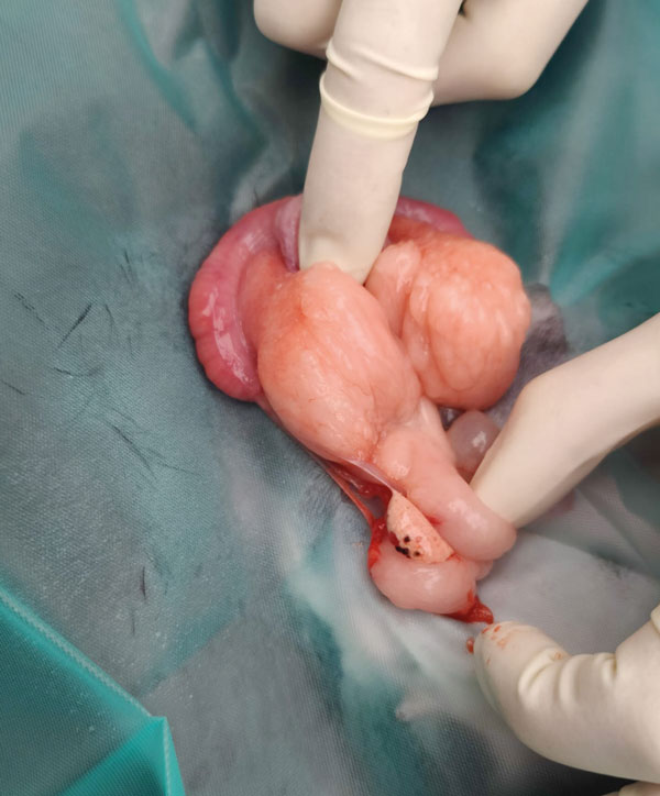 Figure 1b: Rabbit uterus and ovary in a mature doe.