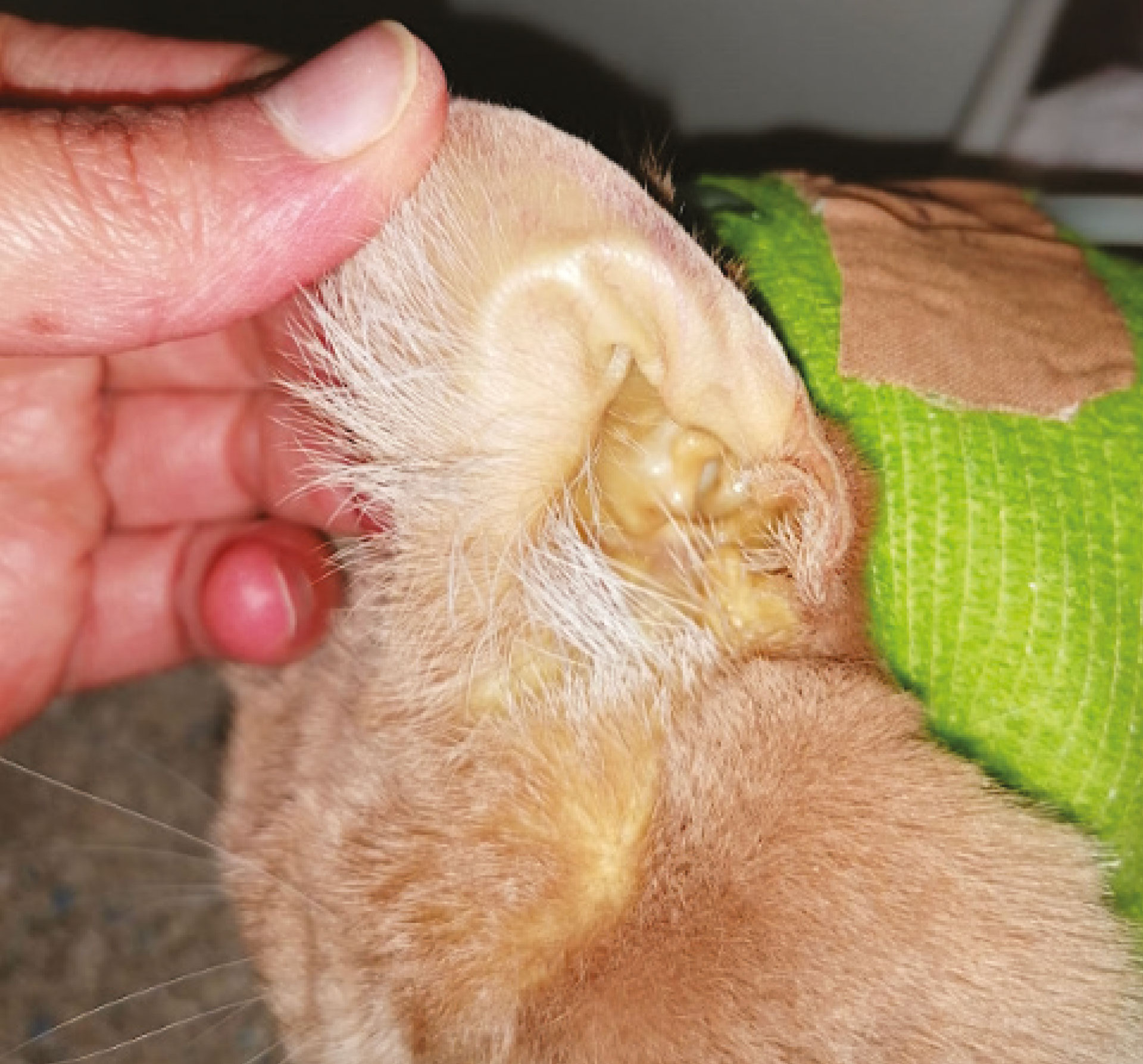 Figure 1. Jaundiced skin of a cat with extra-hepatic bile duct obstruction due to acute necrotising pancreatitis, and concurrent hepatic lipidosis. Picture courtesy of Dr Ana Jacinto MRCVS.
