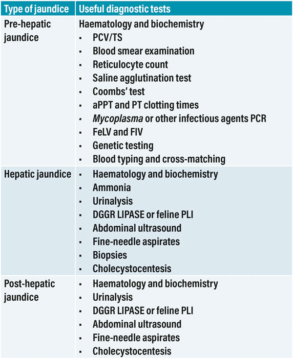 A combination of tests is usually necessary during the clinical investigations of cats with jaundice (Table 2).