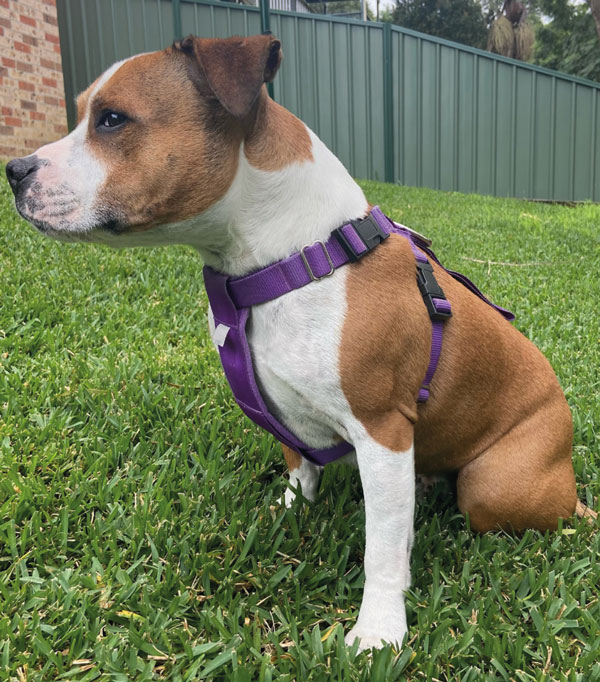 Figure 18. An example of a restrictive harness, correctly fitted, but still a problem for the dog.