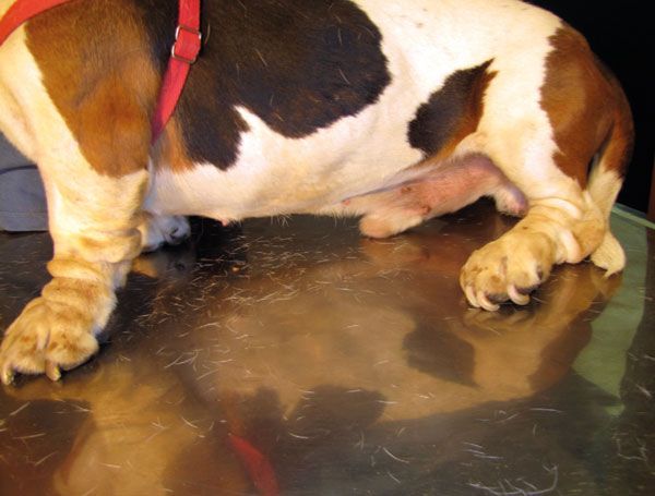 You don’t have to be a vet to realise the dog is being effectively hobbled: