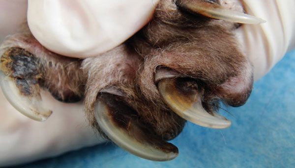 Clipping the overly long nails allows the animal to walk pain-free and with correct pad placement, none of which is possible in an animal with ‘wheelbarrow’ ingrown nails.