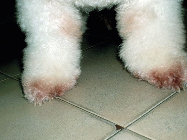 Visual: dogs with skin allergy and infections often have various levels of gait disorder from co-existing pododermatitis. So, pay attention to gait and nails in any dermatology presentation and vice versa in an orthopaedic presentation.