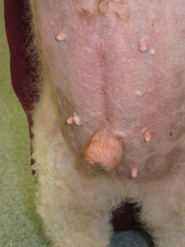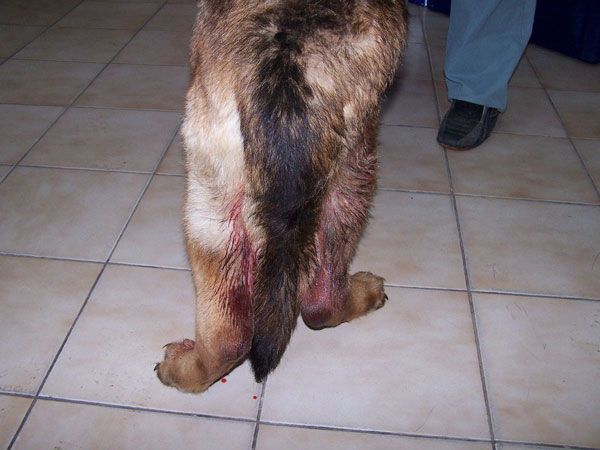 The heat and erythema are 10/10. These cases are the stuff of nightmares; the experience is slow to leave your mind, including the vocalisation and the shivering as the animals writhe on the consult table. This is no time to be heroic but it is time to stop the suffering. Poor appetite, loss of condition, generalised weakness, and oedema of one or both hind legs may also be present.