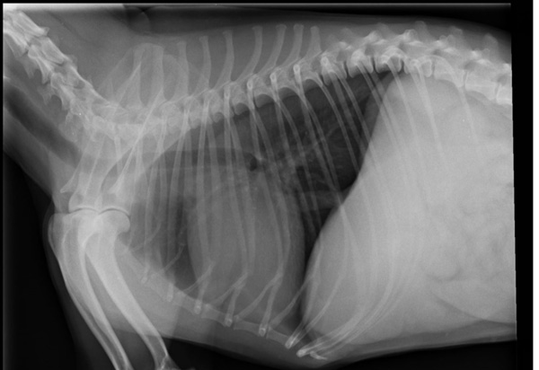 Figure 1: Lateral thoracic radiograph without annotations. Radiograph courtesy of Nigel Johnson MVB.