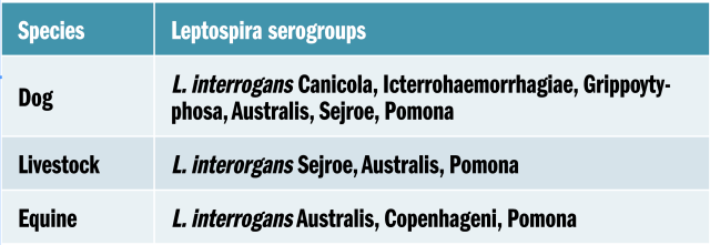 For the past 50 years, a bivalent vaccine has been utilised for protection in canines. However, several years ago tri and tetravalent vaccines were released to the veterinary market in response to emerging concerns to changing patterns of leptospirosis.