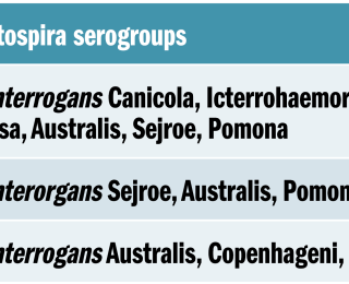 • Goldstein RE, Lin RC, Langston CE, Scrivani PV, Erb HN & Barr, SC. 2006. Influence of infecting serogroup on clinical features of leptospirosis in dogs. Journal of Veterinary Internal Medicine. https://doi.org/10.1892/0891-6640(2006)20[489:IOISOC]2.0.CO;2