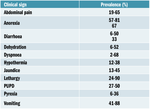 Sykes et al, (2011) reported survival rates of 80%. Major et al, (2014) found that the presentation of hepatic dysfunction was most negatively associated with survival. This has been recognised in human studies where the presence of jaundice was associated with higher mortality than other presentations (Taylor et al, 2015).
