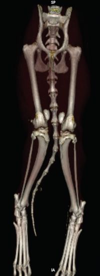 Figure 1: Computed tomographic 3D reconstruction image of a cat diagnosed with bilateral medial patellar luxation.
