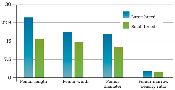 Due to the small number of subjects examined, it was not possible to reach any definite conclusions on the extent of bone loss due to age. However, the work suggests that variables such as sex, breed type and gonadal hormone levels are unlikely to influence bone density2. Consequently, this work is continuing with a larger population of animals and it will include an examination of specific age-related changes in the skeleton.